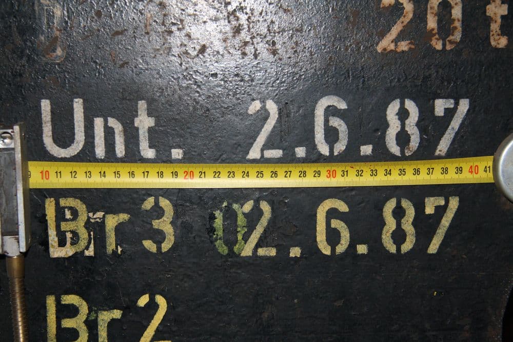 Eine weitere Arbeit war es die alten Anschriften zu vermessen, um die neu anzubringenden möglichst dem Original nachempfinden zu können. Hierdurch soll das ursprüngliche Erscheinungsbild der Lok möglichst erhalten werden.