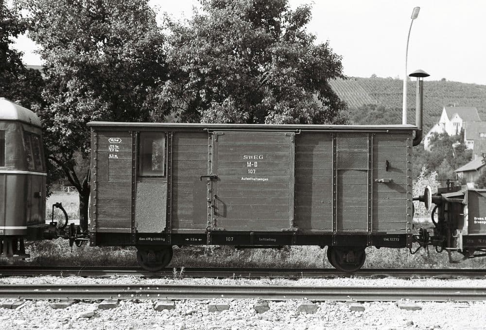 - M-D 107: Für die Bahnmeisterei fand 1967 ein Umbau zum Aufenthaltswagen statt. Hierbei erhielt er Bänke, einen Ofen und Fenster anstatt von Gittern.