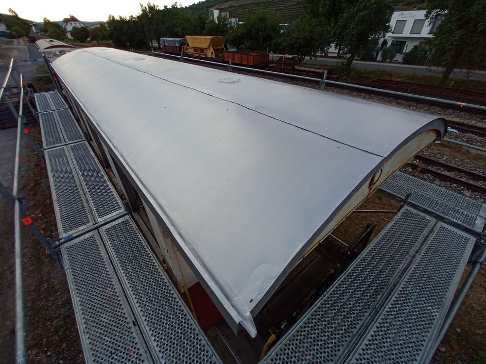 Das Dach nach dem zweiten von drei Anstrichen Ende August 2022.