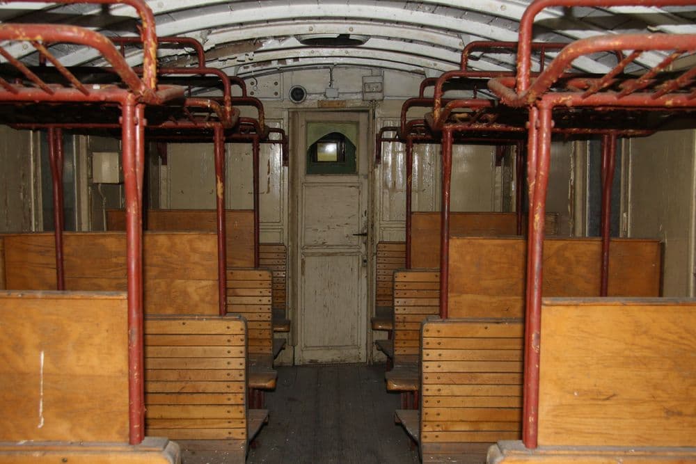 Die Innenausstattung zeigt sich im Zustand nach der “Modernisierung” durch die DB in den 50er Jahren. Hierbei wurden aus Stahlrohren geschweißte Sitzgestelle verbaut.