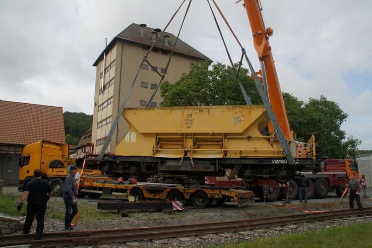 Ankunft des Wagens im Bahnhof Dörzbach.