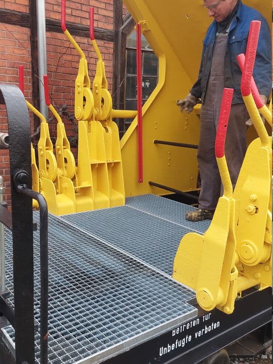 Auch die Schotterklappen wurden demontiert, gesäubert, an den abgerosteten Kanten teilweise aufwändiger aufgearbeitet und dann neu gestrichen.