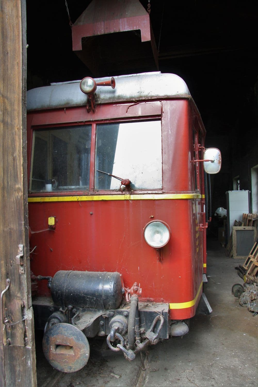Der Triebwagen in seinem derzeitigen Domizil, dem Bieringer Lokschuppen. Dort wartet er sicher und trocken abgestellt auf seine Erweckung.