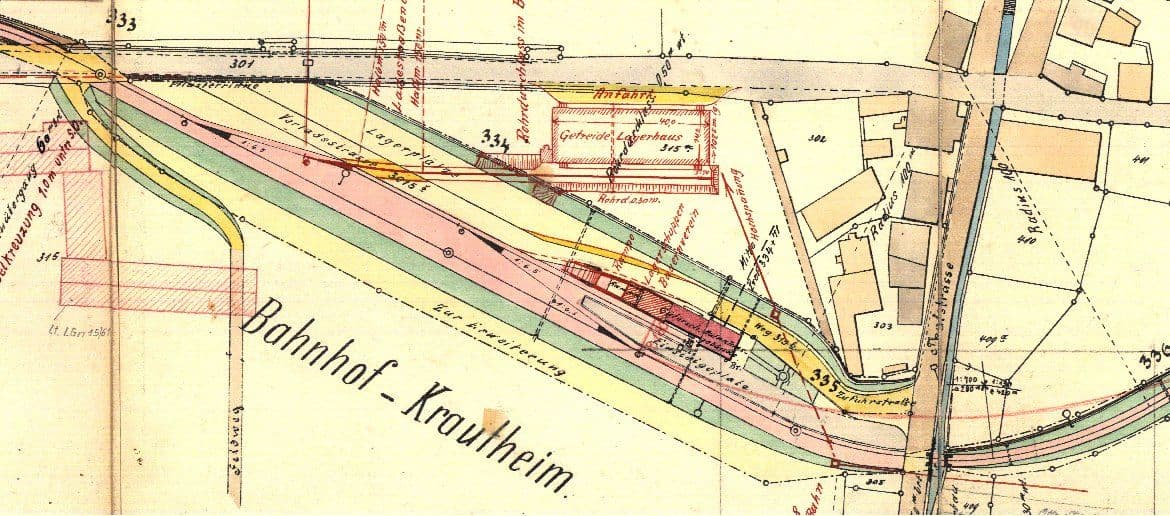 Nun wird als letzte größere Betriebsstelle vor Dörzbach Krautheim erreicht. Der Bahnhof wurde mehrfach verändert und umgebaut. Zuletzt bestand er aus einem Ausweich-, einem Stumpfgleis und einem beidseitig angebundenem Ladegleis am BAG-Lagerhaus. Die Stadt ist auch für die Namensgebung unserer Lok 24² verantwortlich, welche von 1967 bis 2000 auf dem Bahnhofsgelände als Denkmal stand. Erst dort erhielt sie nämlich ihren Namen “Kunigunde von Crutheim”. Ab Krautheim bis Dörzbach wurde die Strecke abgebaut, da um die Jahrtausendwende die Hoffnung bestand mit Hilfe von Fördergeldern diesen Streckenteil zu reaktivieren. Da es Uneinigkeiten bezüglich der Finanzierung des Eigenanteils gab, kam dies leider nicht zu Stande.