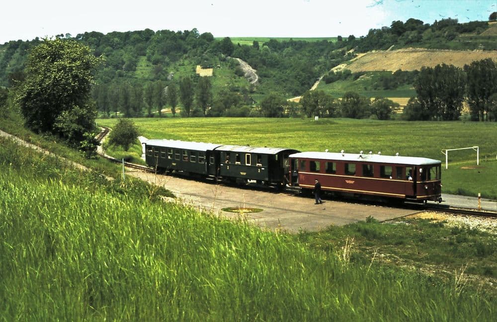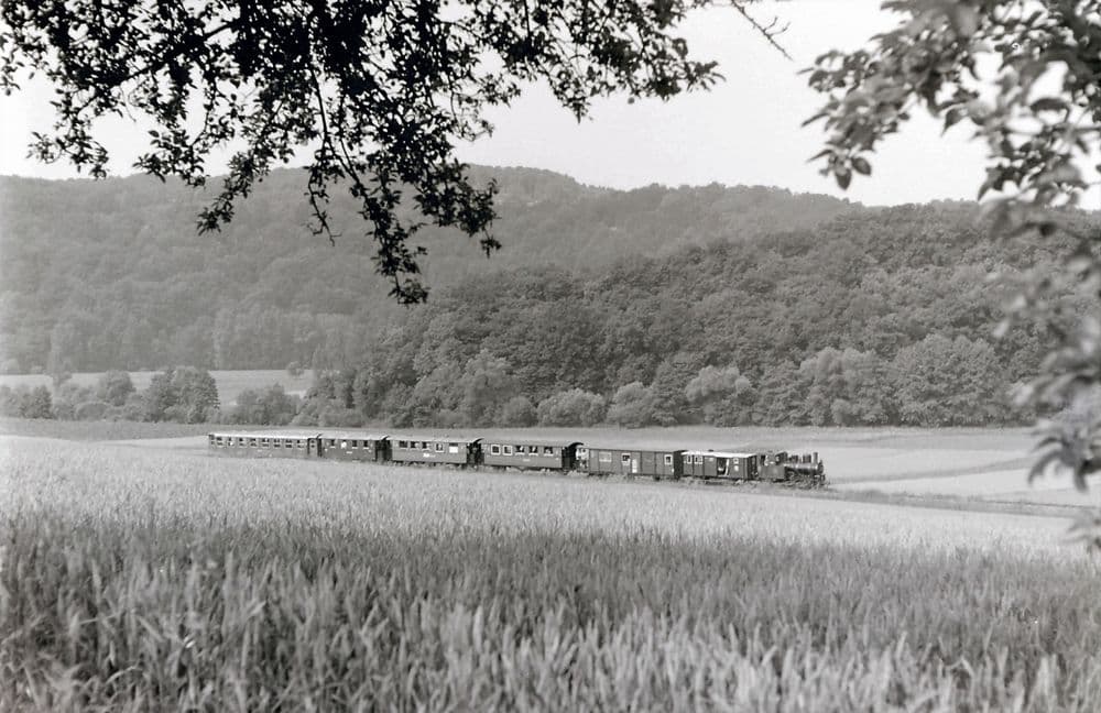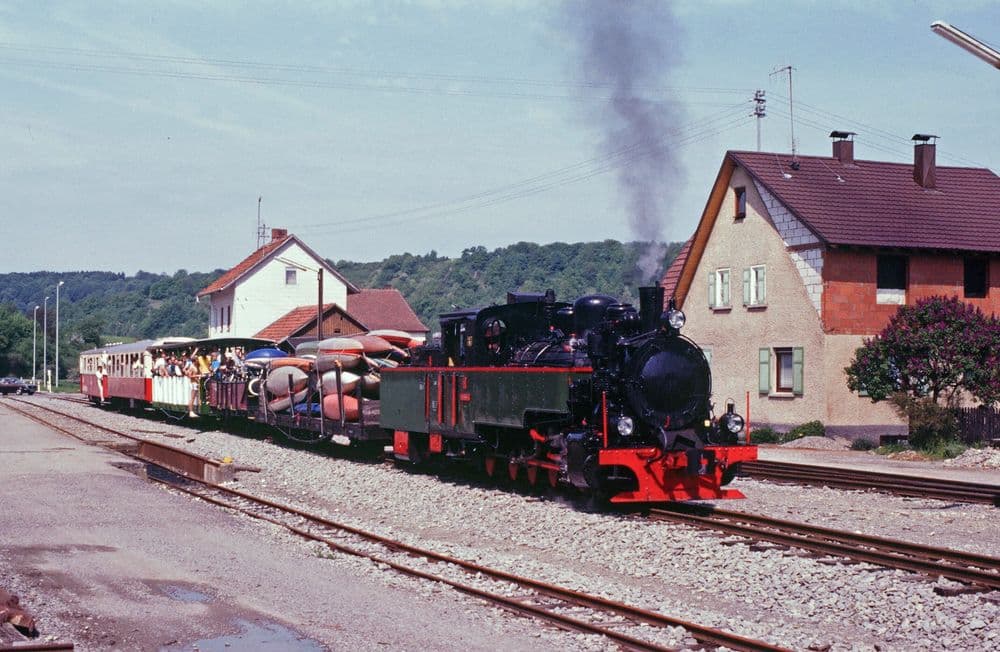 Am 13.07.1975 zieht “Helene” einen Museumszug duch das malerische Jagsttal.