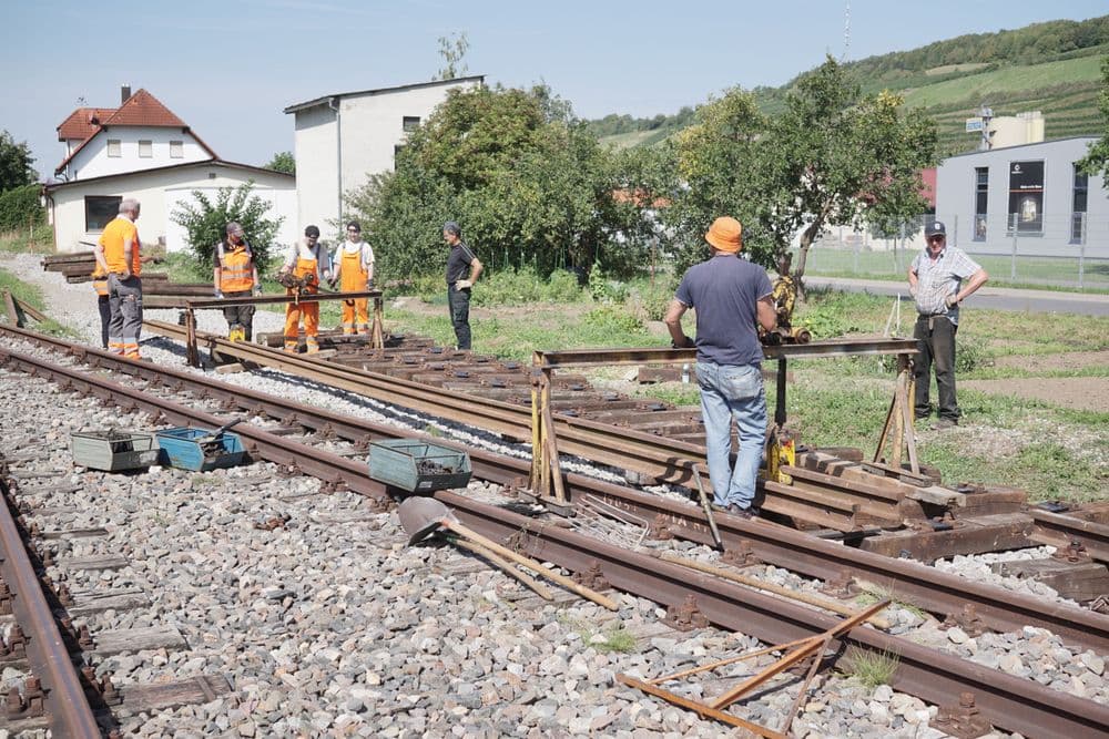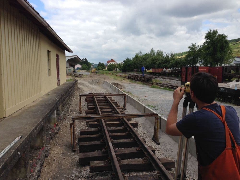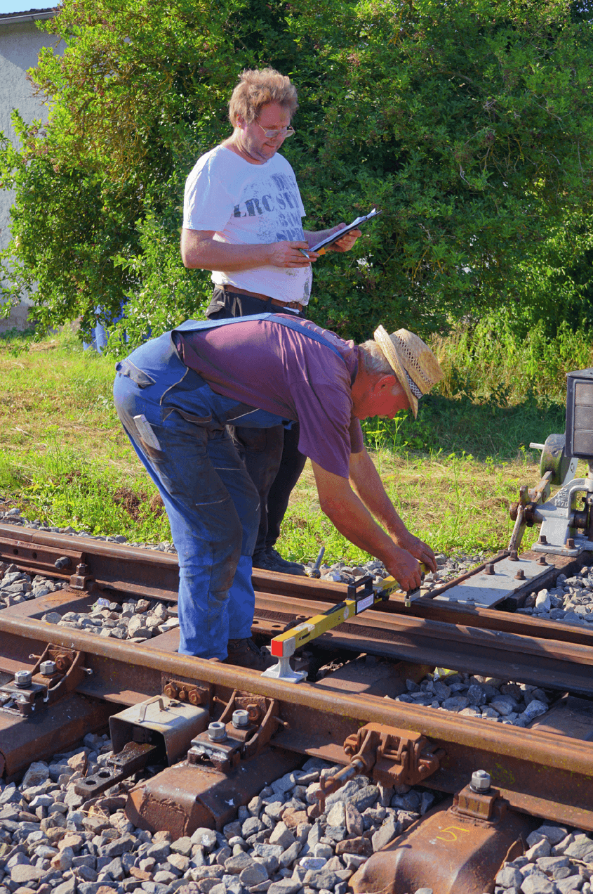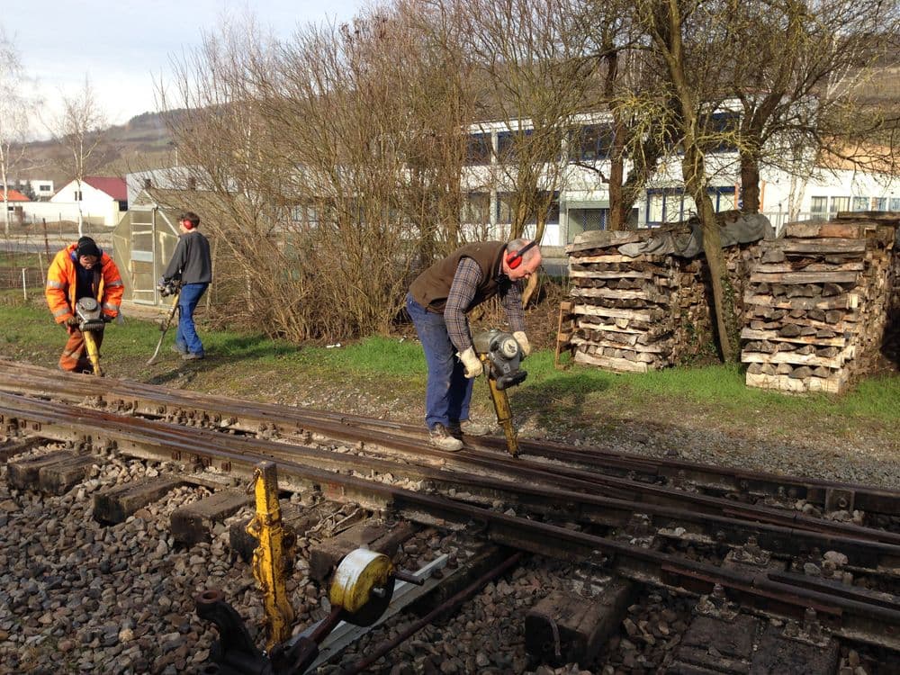 Mit den konkreten Arbeiten für die Wiederinbetriebnahme der Infrastruktur fielen seit 2020 wieder einige Arbeiten an. Was vielleicht manchen verwundert: Auch beim Gleisbau kommt es auf Millimeter an. So müssen die Werte für Spurweite, gegenseitige Höhenlage der beiden Schienen eines Gleises sowie deren Änderung auf einer bestimmten Strecke innerhalb einiger Millimeter liegen. Insbesondere in den Weichen kommen zudem unzählige Maße dazu, die nicht nur alle eingehalten werden müssen, sondern sich zum Großteil auch noch gegenseitig beeinflussen, was die Korrektur teilweise sehr schwierig macht. Stand Herbst 2021 sind alle Arbeiten abgeschlossen und der Weiterbau in Richtung Klepsau wird vorbereitet.
