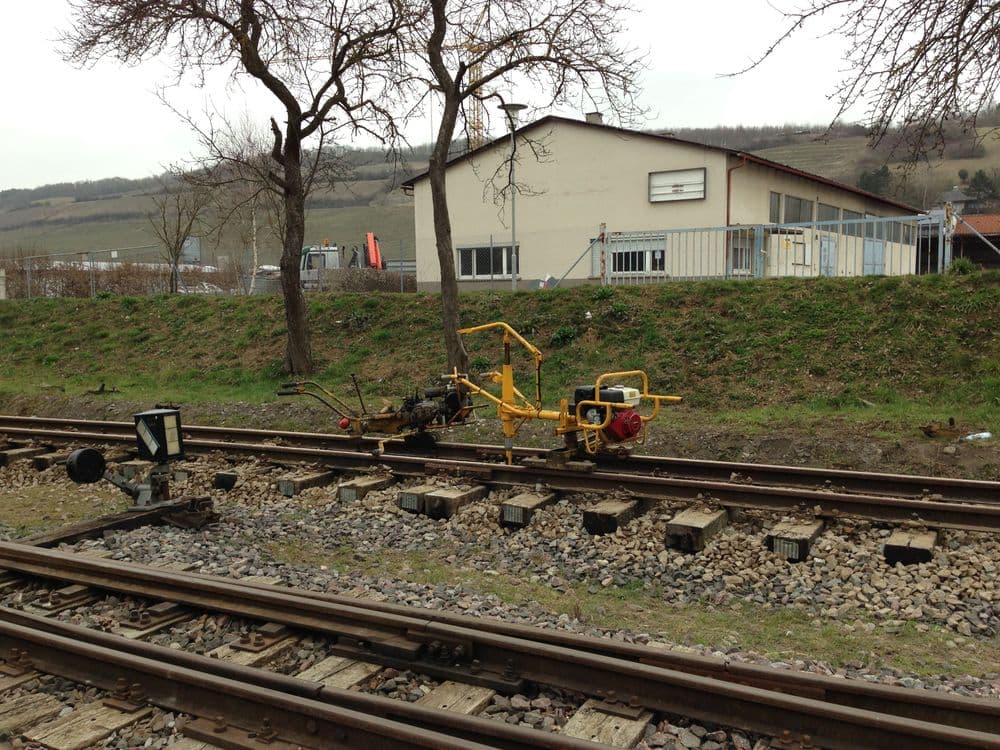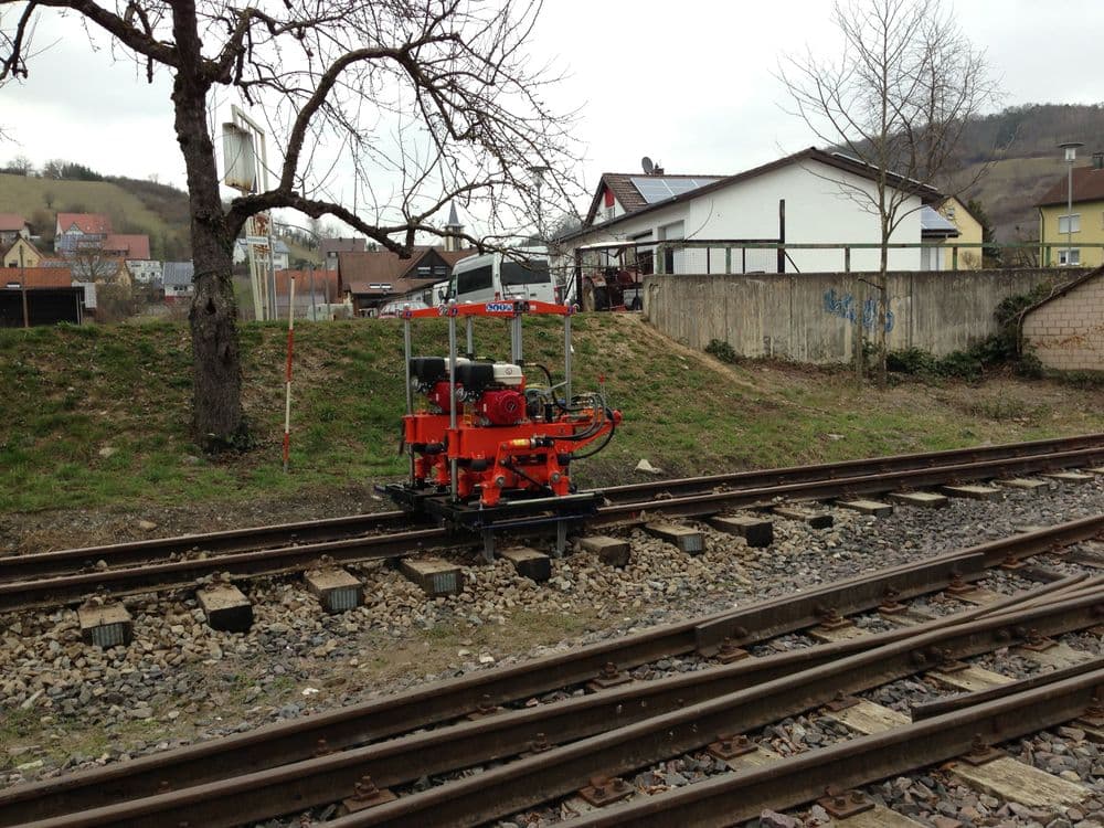 Mit unserer Stopfmaschine wird der Schotter verdichtet und unter die Schwellen gedrückt. Dadurch wird auch die Höhenlage bestimmt.